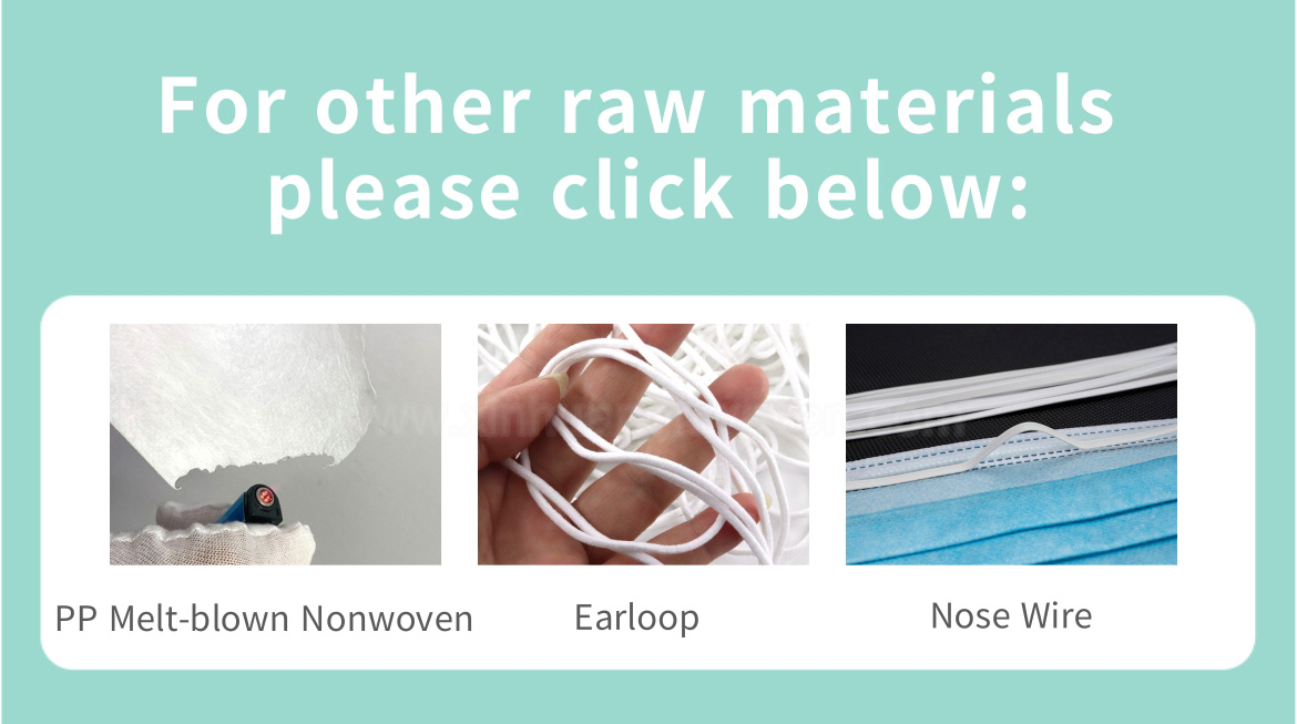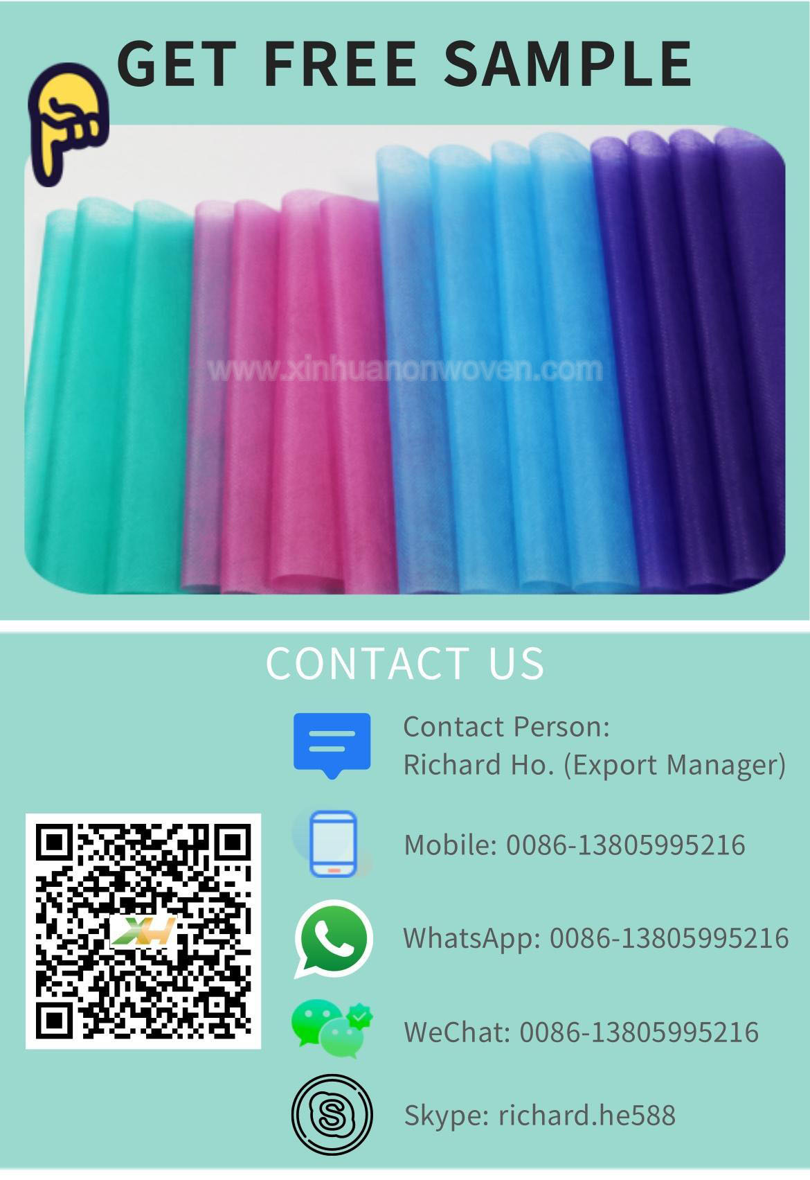 | Proben | Ein komplettes Set mit kostenlosen Mustern von Vliesstoff für Gesichtsmasken inklusive Farbkarte steht Ihnen zur Verfügung. |