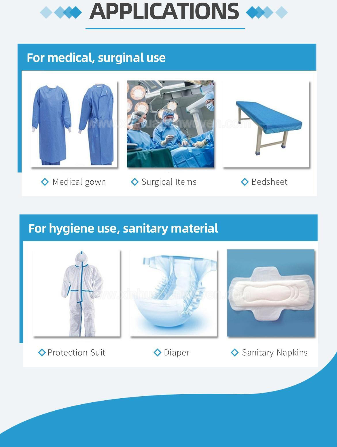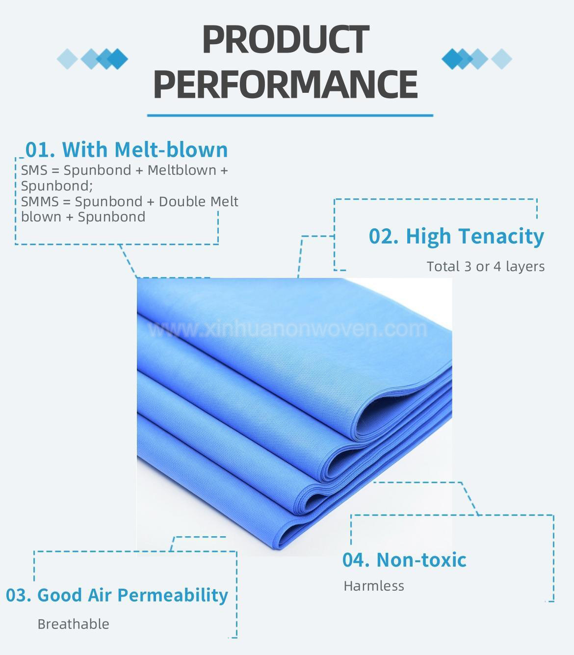 Unser SMS-Vliesstoff Es besteht aus einem dreischichtigen Verbundmaterial und findet breite Anwendung in der Medizin, im Sanitärbereich, in der Industrie und anderen Bereichen. Es zeichnet sich durch hervorragende wasserdichte, atmungsaktive und filternde Eigenschaften aus.